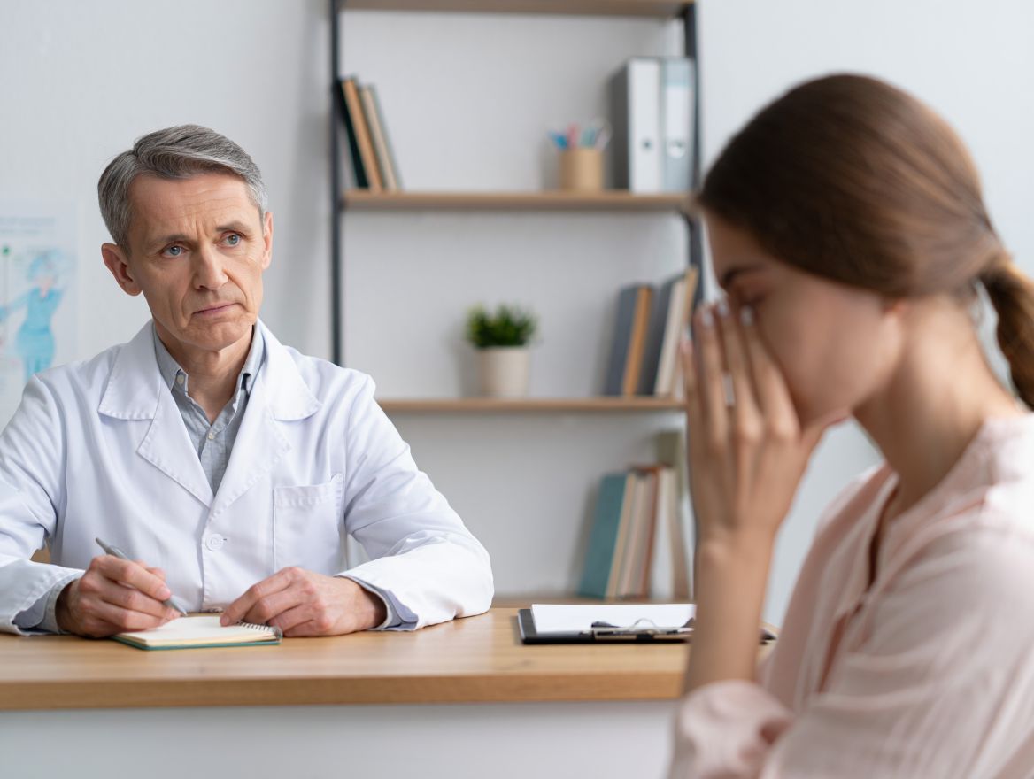 Консультация с врачом в клинике, врач что-то объясняет